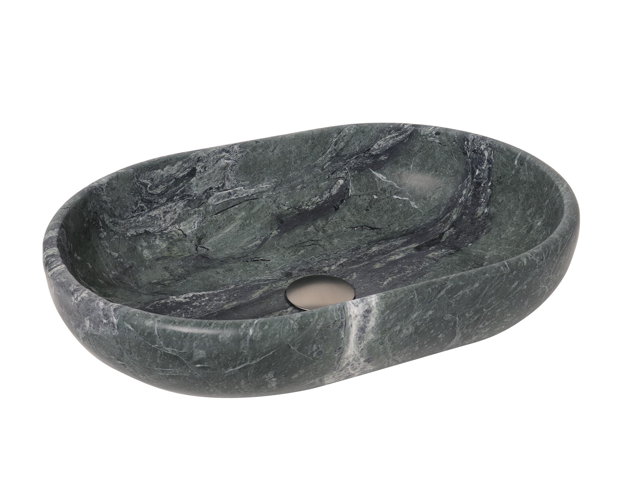 Each basin is carved from a solid block of natural stone.
