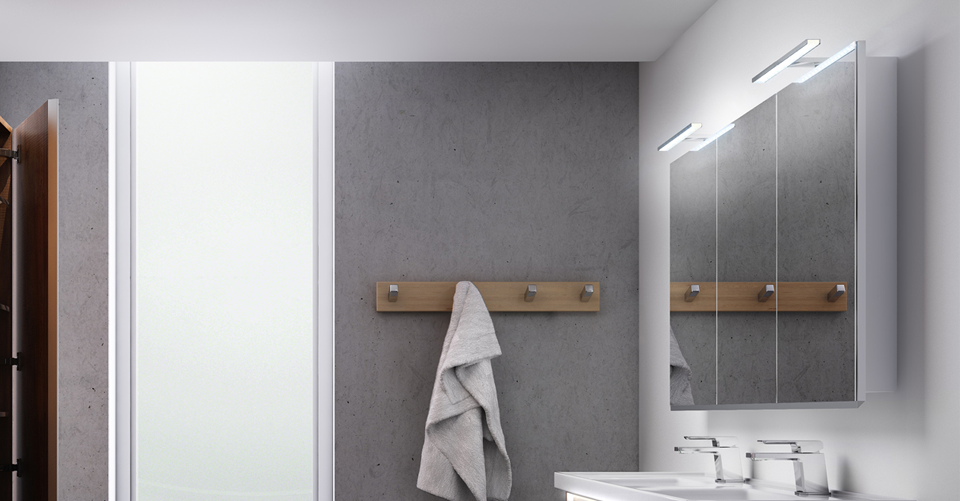 3 in 1 bracket included, mounts to wall, selected mirrors and cabinets.