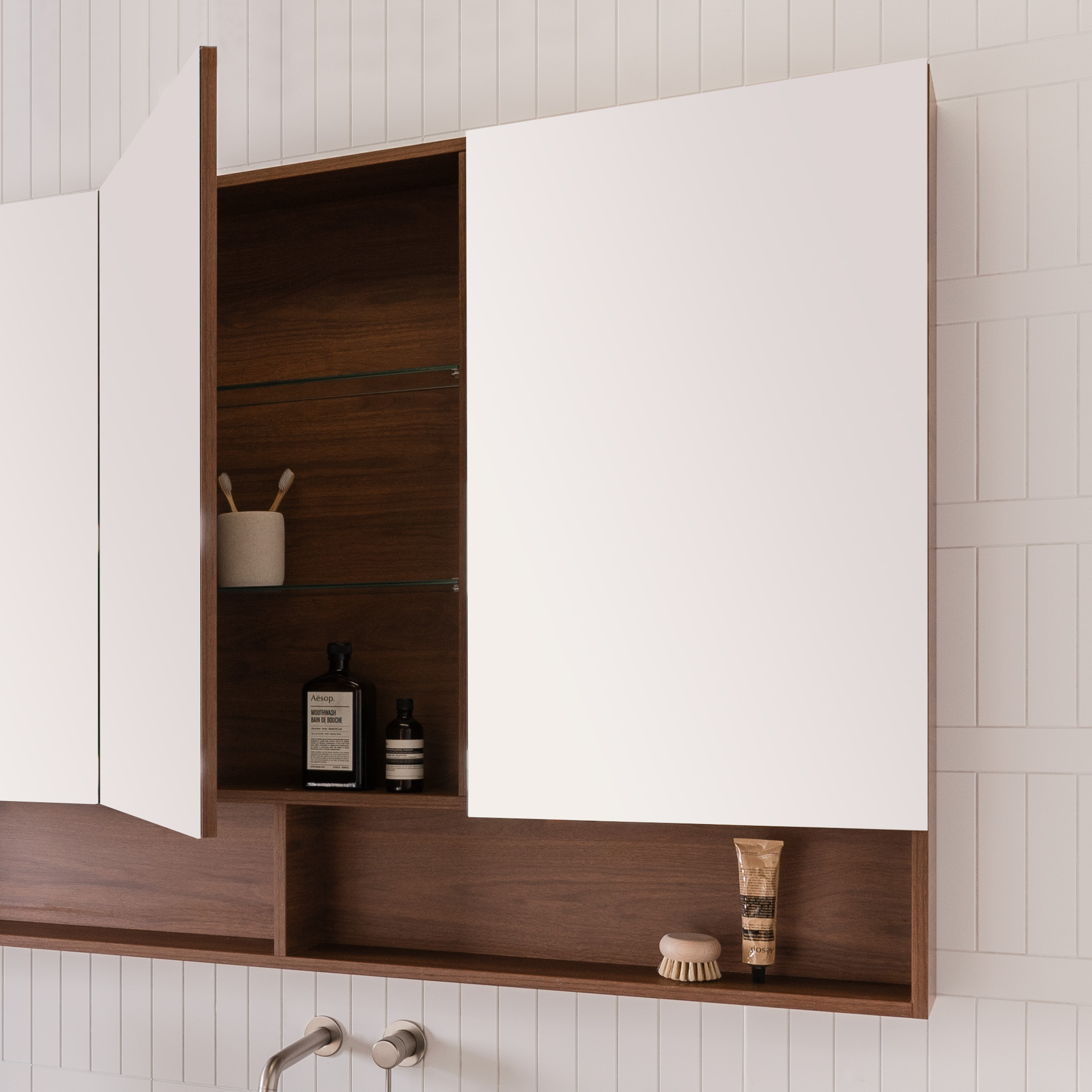 Eli 1500 Mirrored Cabinet, 4 Door, Florentine Walnut textured cabinet finish