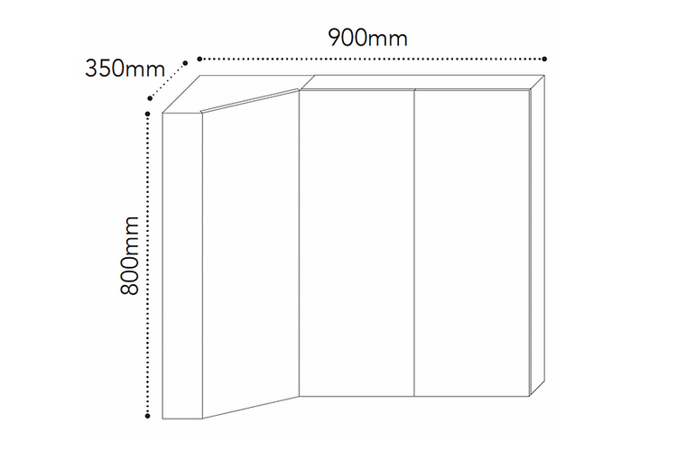 Glacier Offset Corner Mirrored Cabinet 900, 3 doors