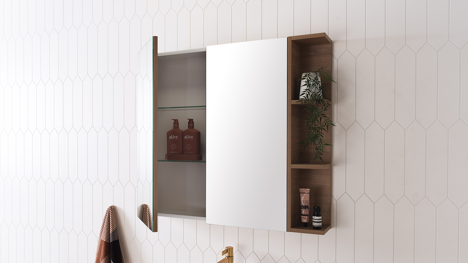 Adjustable internal glass shelves.