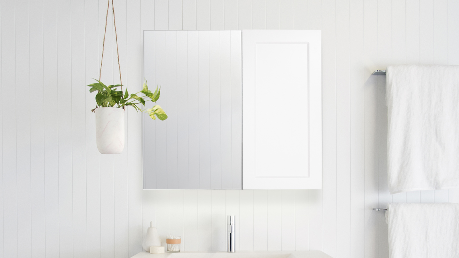 Shaker style solid doors, available in Matte White, Matte Milton Moon Grey or Matte Black polyurethane finish only.