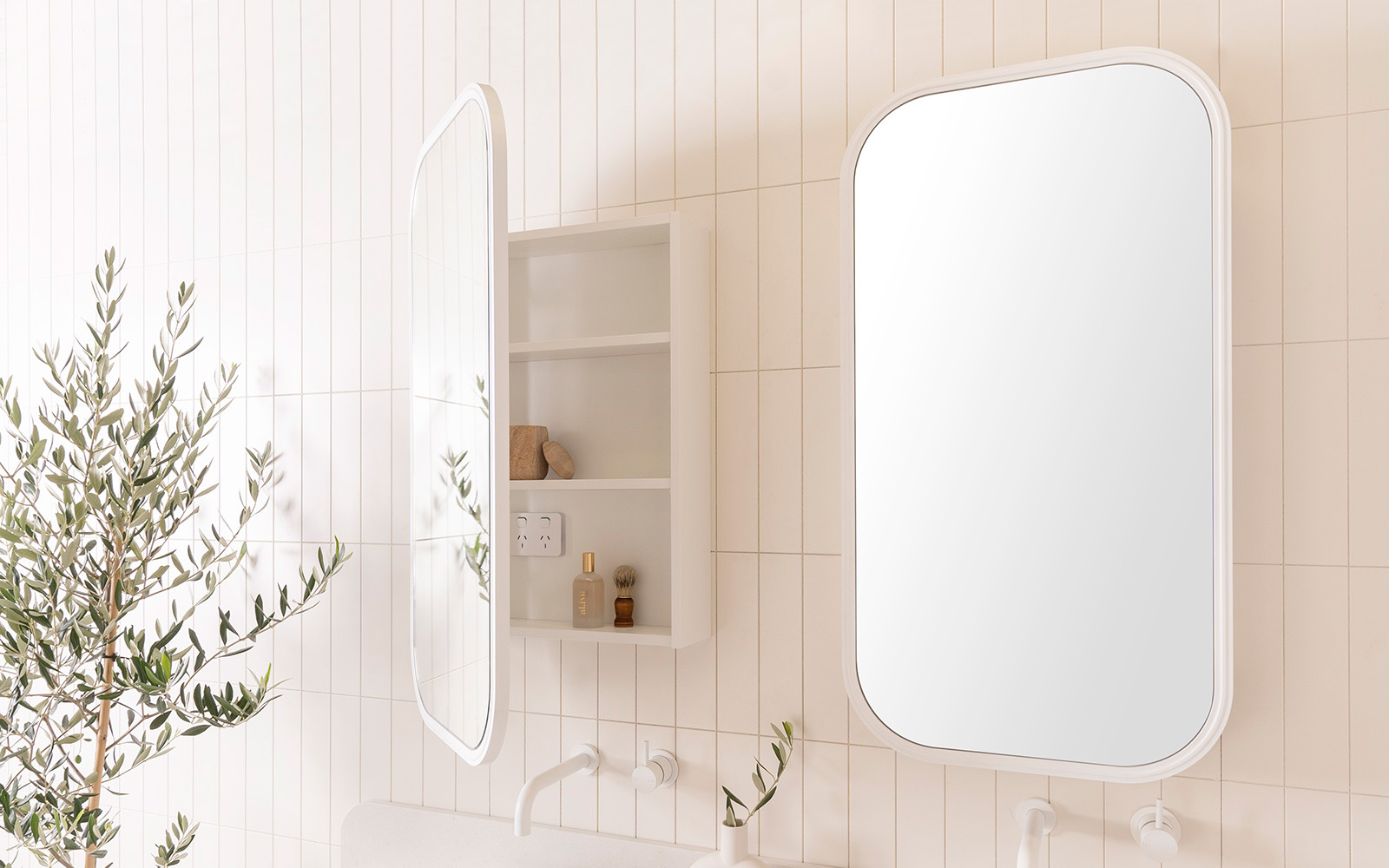 Quinn Mirrored Cabinets x2, Ultra White Matte.