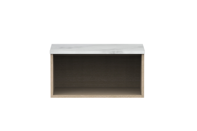 Woodgrain cabinets feature a matching woodgrain interior. White cabinets feature a white satin interior, Matte Milton Moon Grey features a grey satin interior and Matte Black features a black satin interior.
