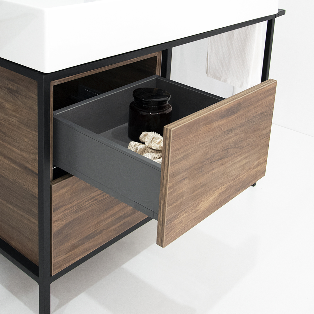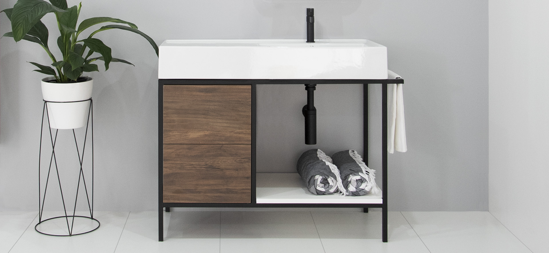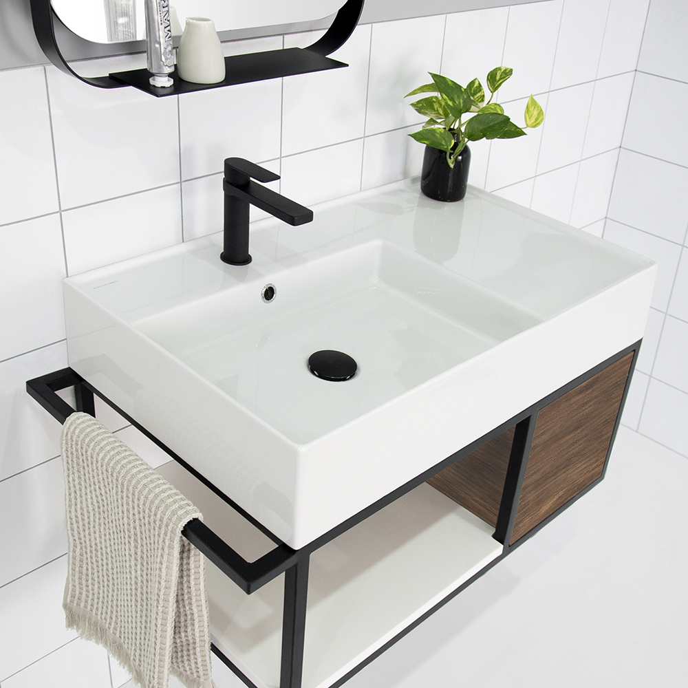 Integrated towel rail located on basin side.