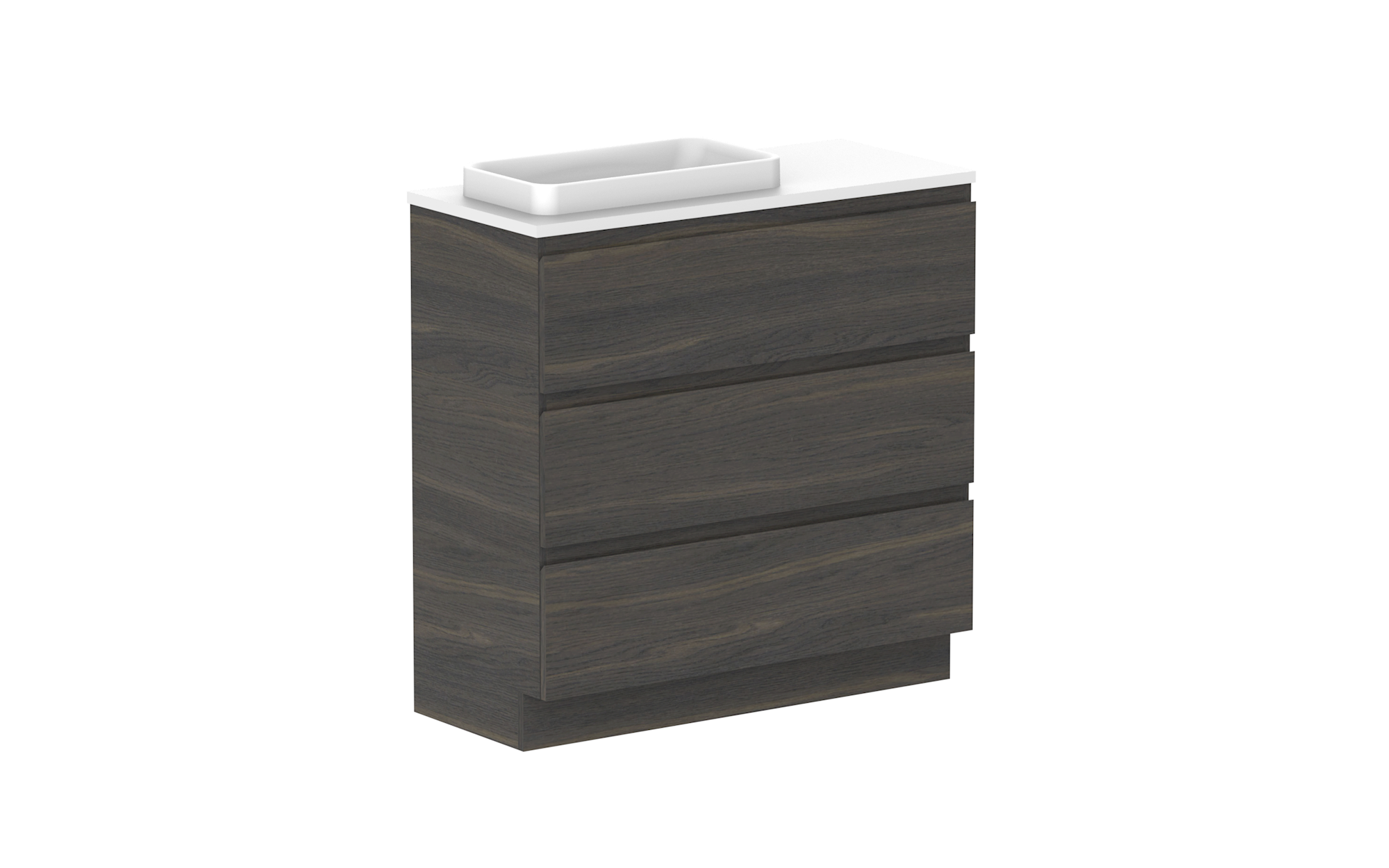 Glacier Ensuite, All-Drawer 900 Trio FM, Benchtop Offset Bowl