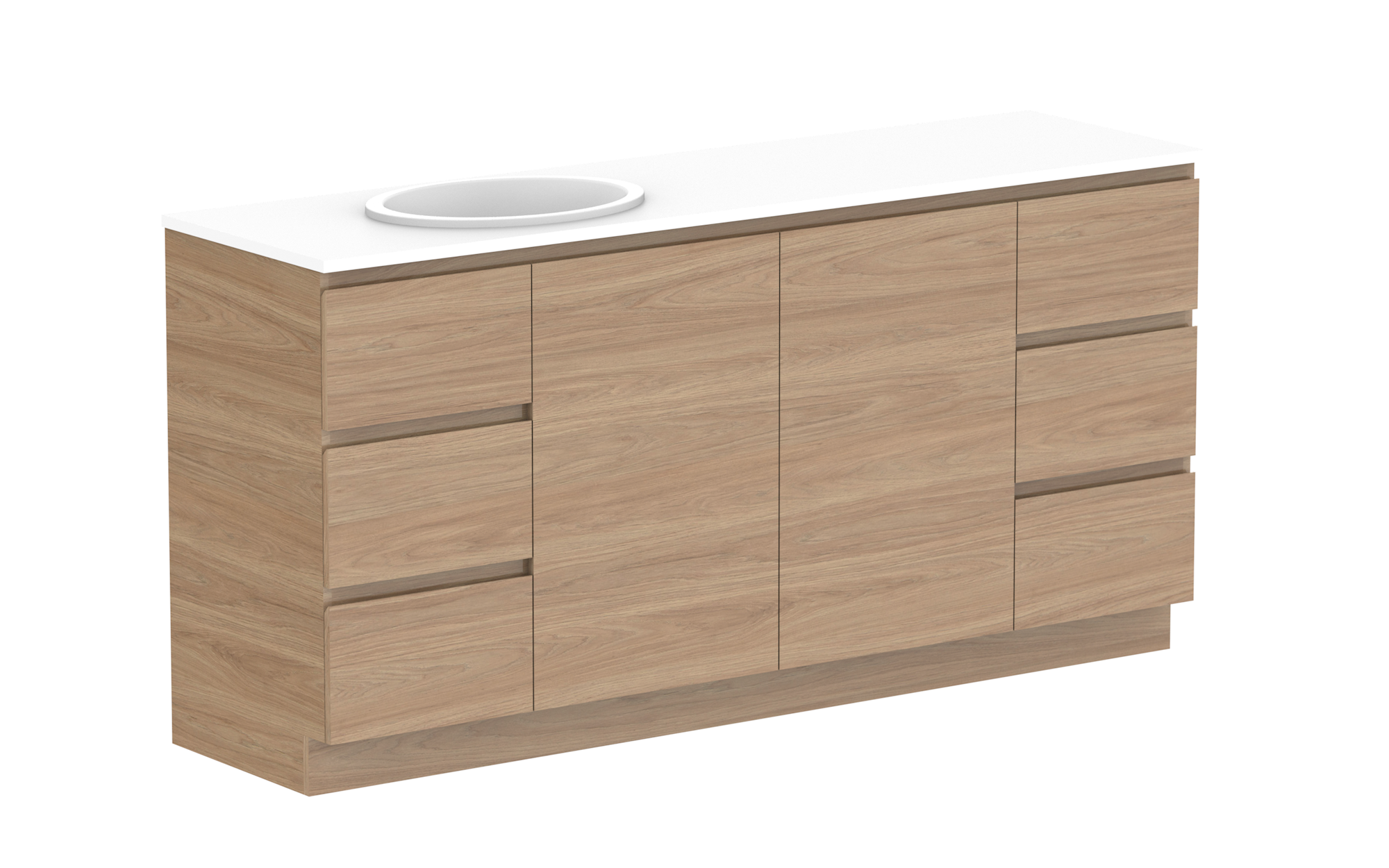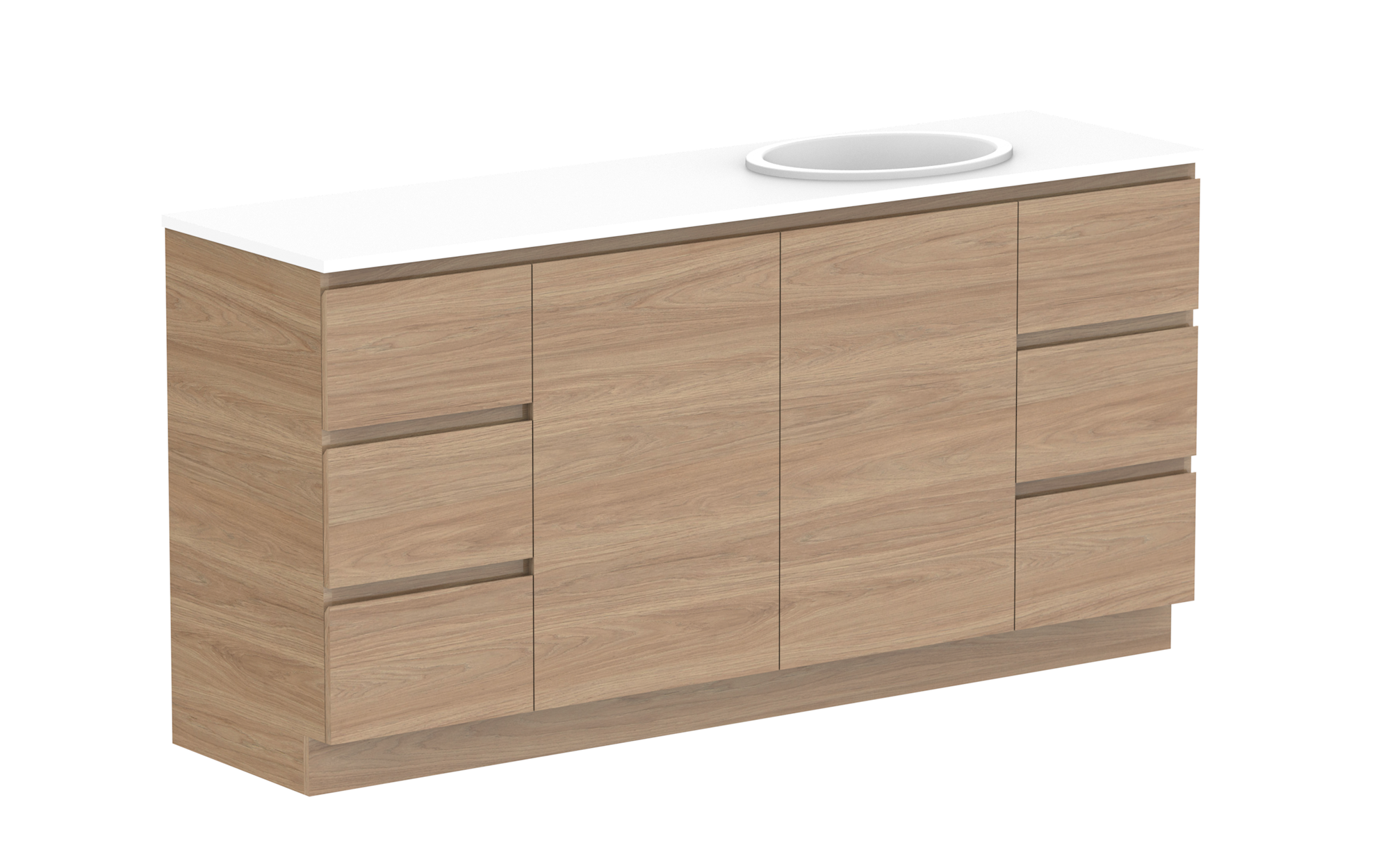 Choose from Ceramic or Cast Marble moulded tops (0, 1 or 3 tap hole available) or benchtop options (no extra charge for basin & tap hole cut-out).