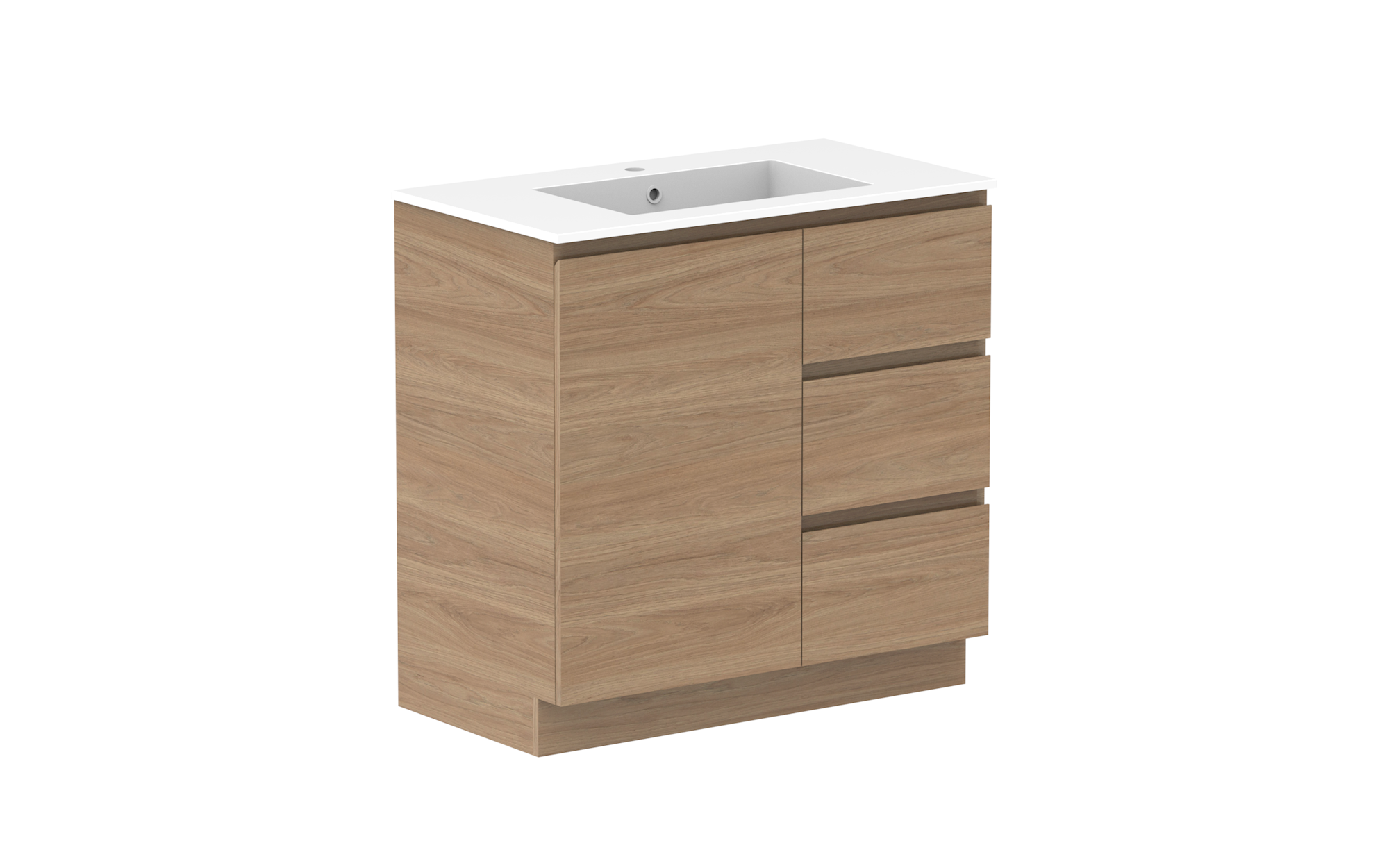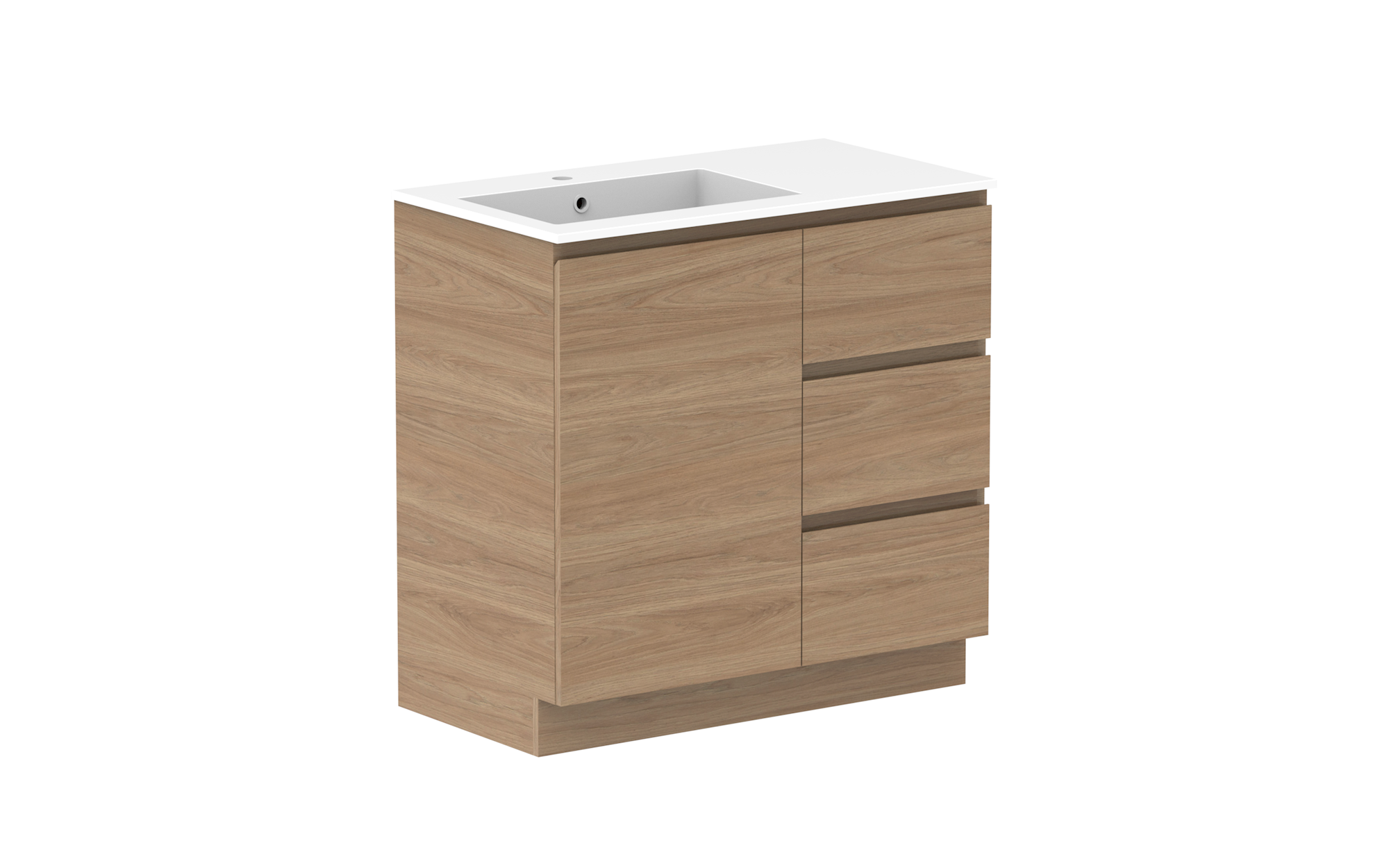 Choose from Ceramic or Cast Marble moulded tops (0, 1 or 3 tap hole available) or benchtop options (no extra charge for basin & tap hole cut-out).