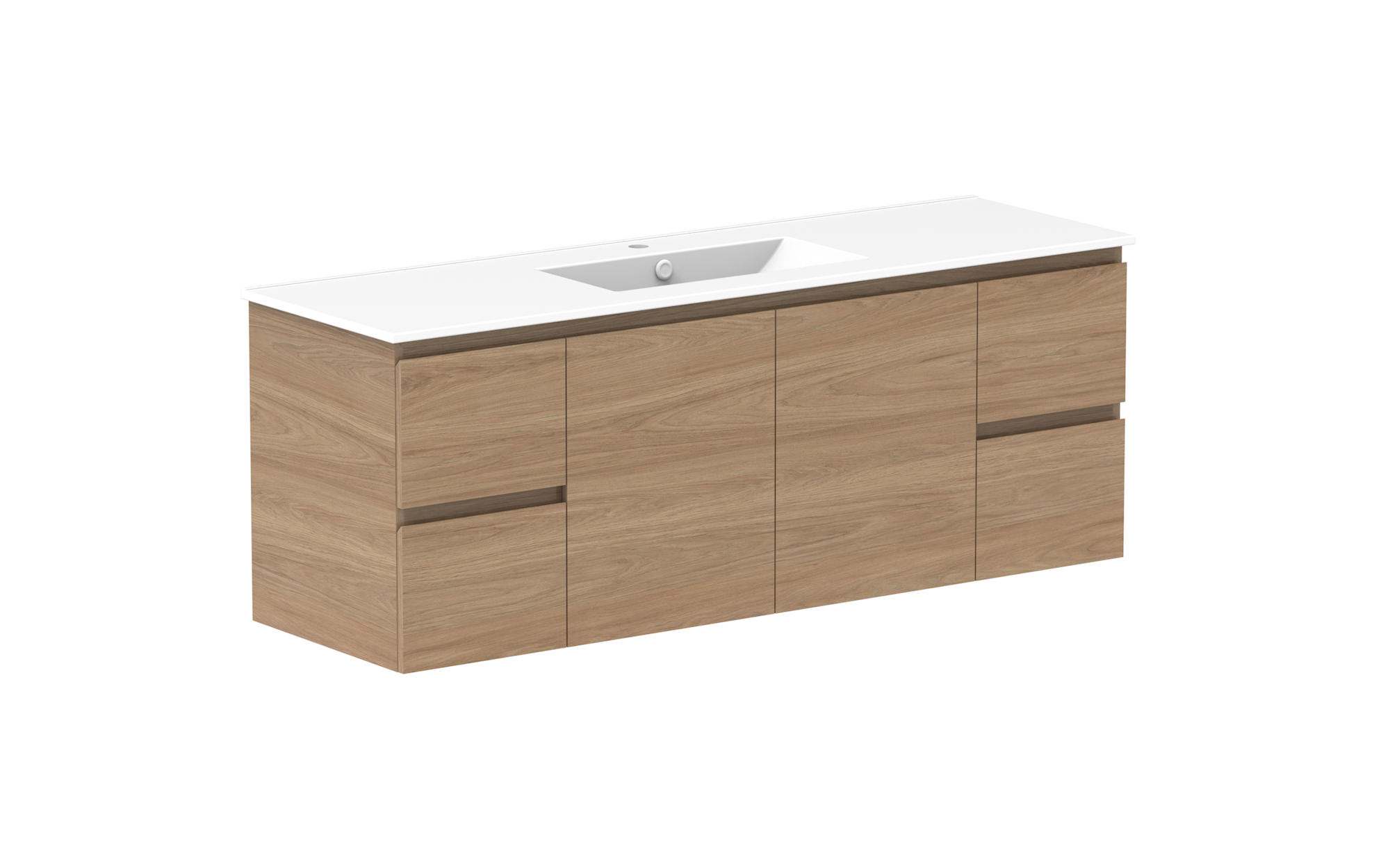 Choose from Ceramic or Cast Marble moulded tops (0, 1 or 3 tap hole available) or benchtop options (no extra charge for basin & tap hole cut-out).
