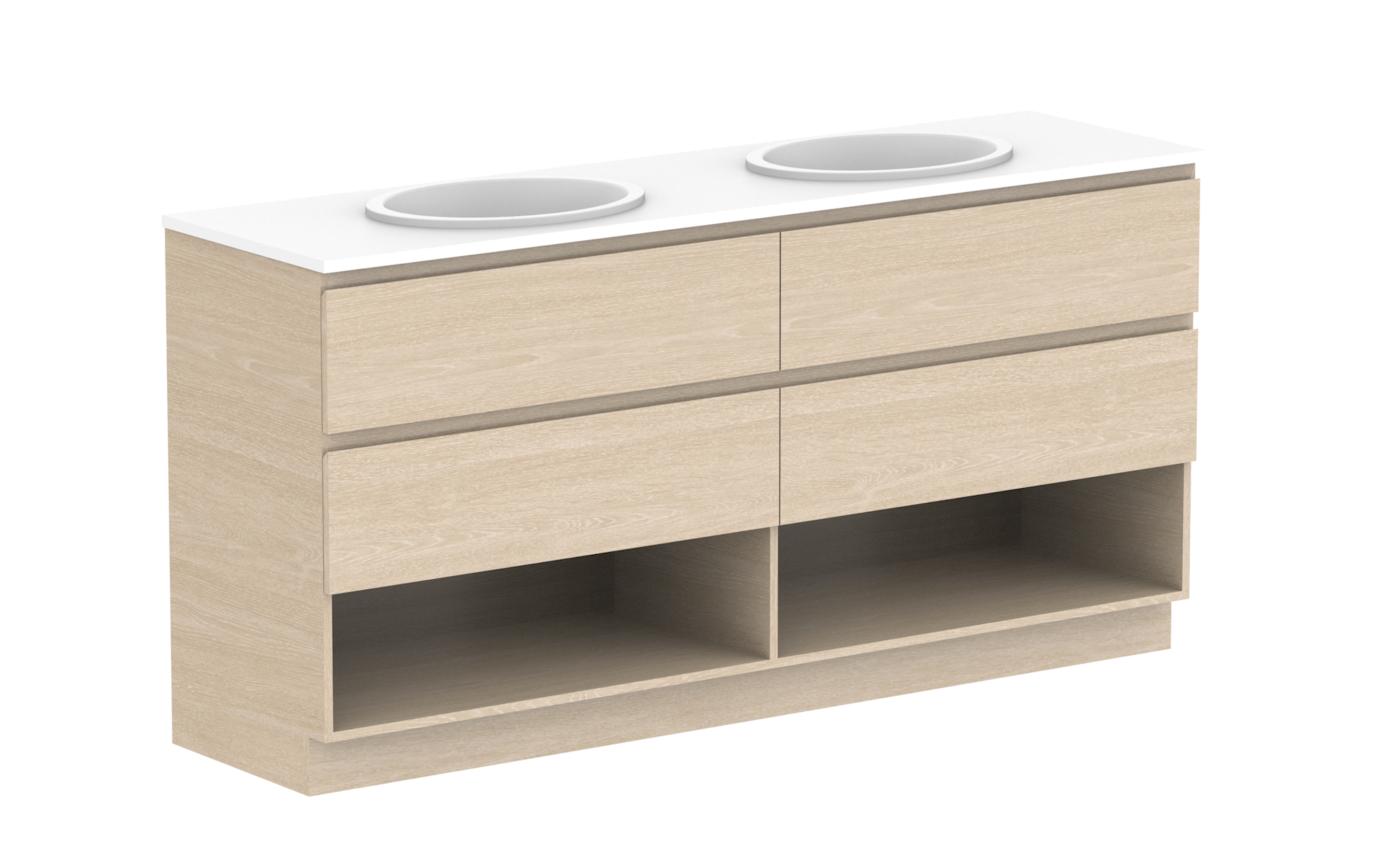 Choose from Ceramic or Cast Marble moulded tops (0, 1 or 3 tap hole available) or benchtop options (no extra charge for basin & tap hole cut-out).