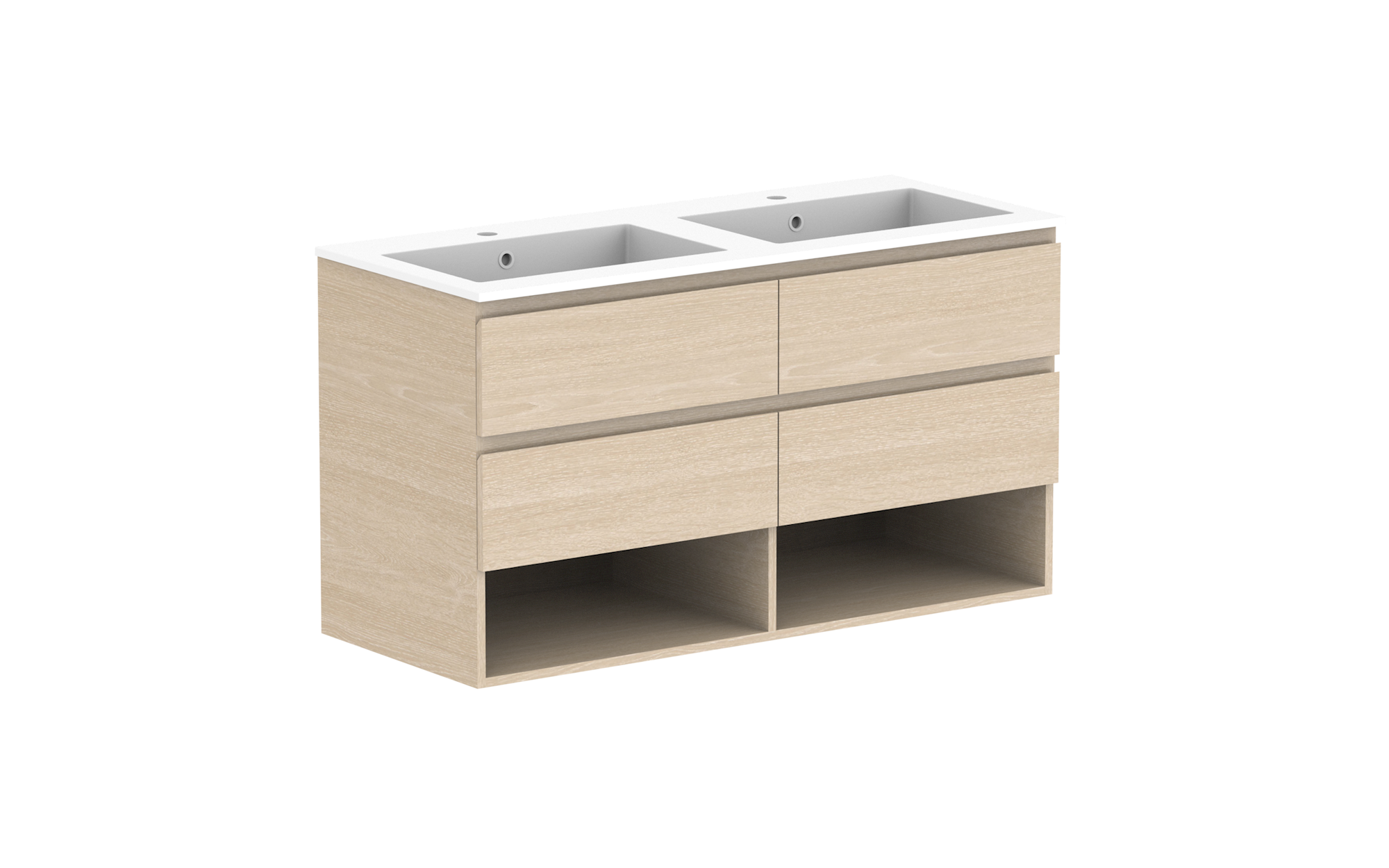 Choose from Ceramic or Cast Marble moulded tops (0, 1 or 3 tap hole available) or benchtop options (no extra charge for basin & tap hole cut-out).