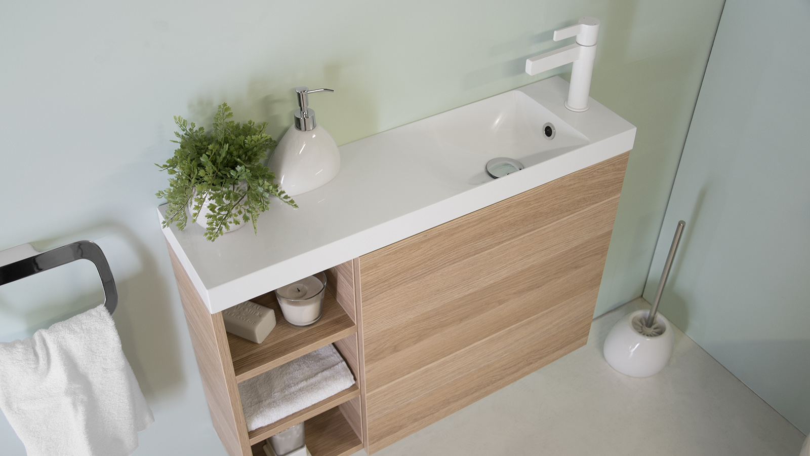 Available left or right hand bowl, shelves opposite bowl.
