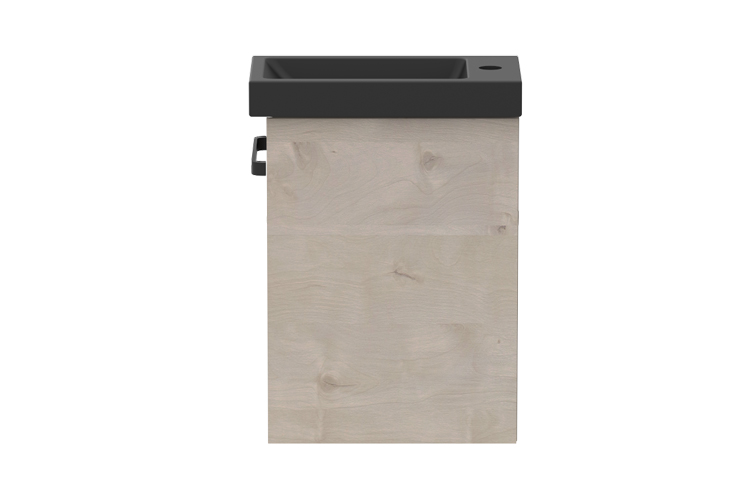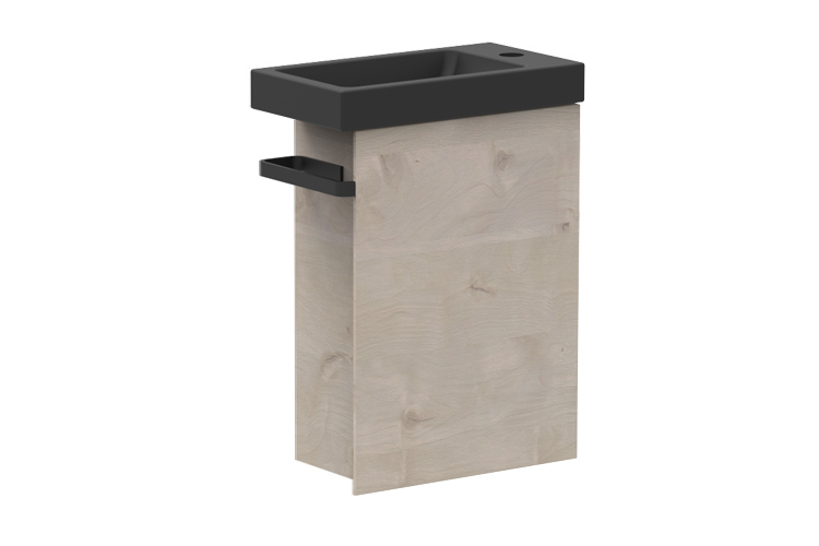 Finger-pull door with soft-close, left or right-hand hinged (tap hole on opposite side to towel ring).