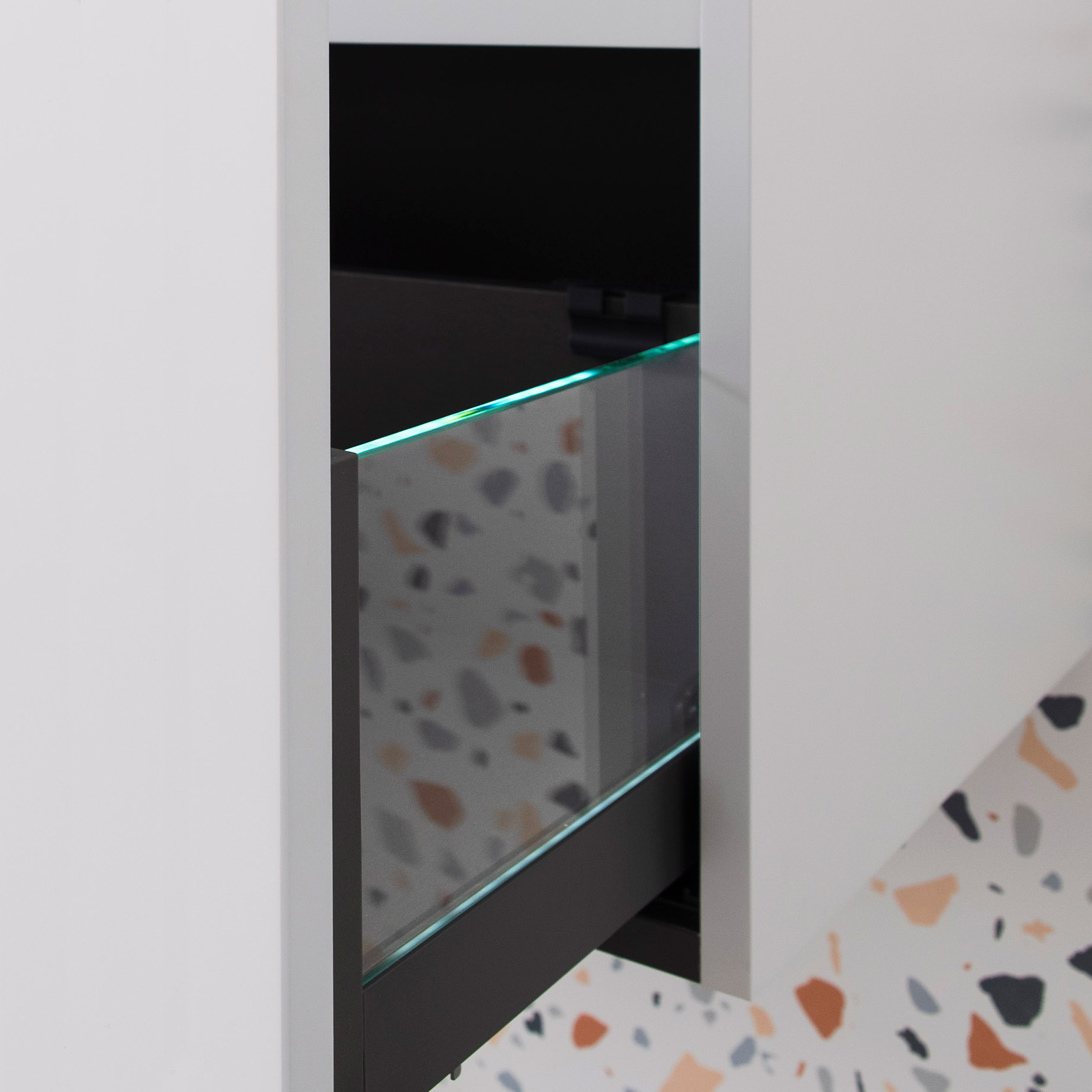 ADP deluxe soft-close drawers with battery powered LED glass sides.