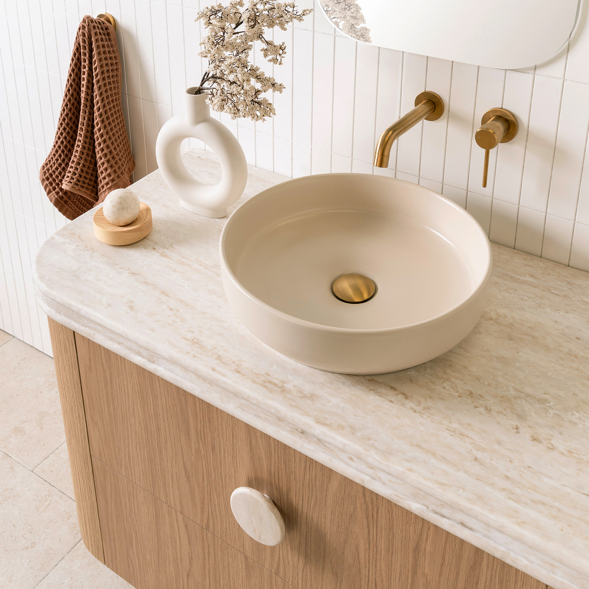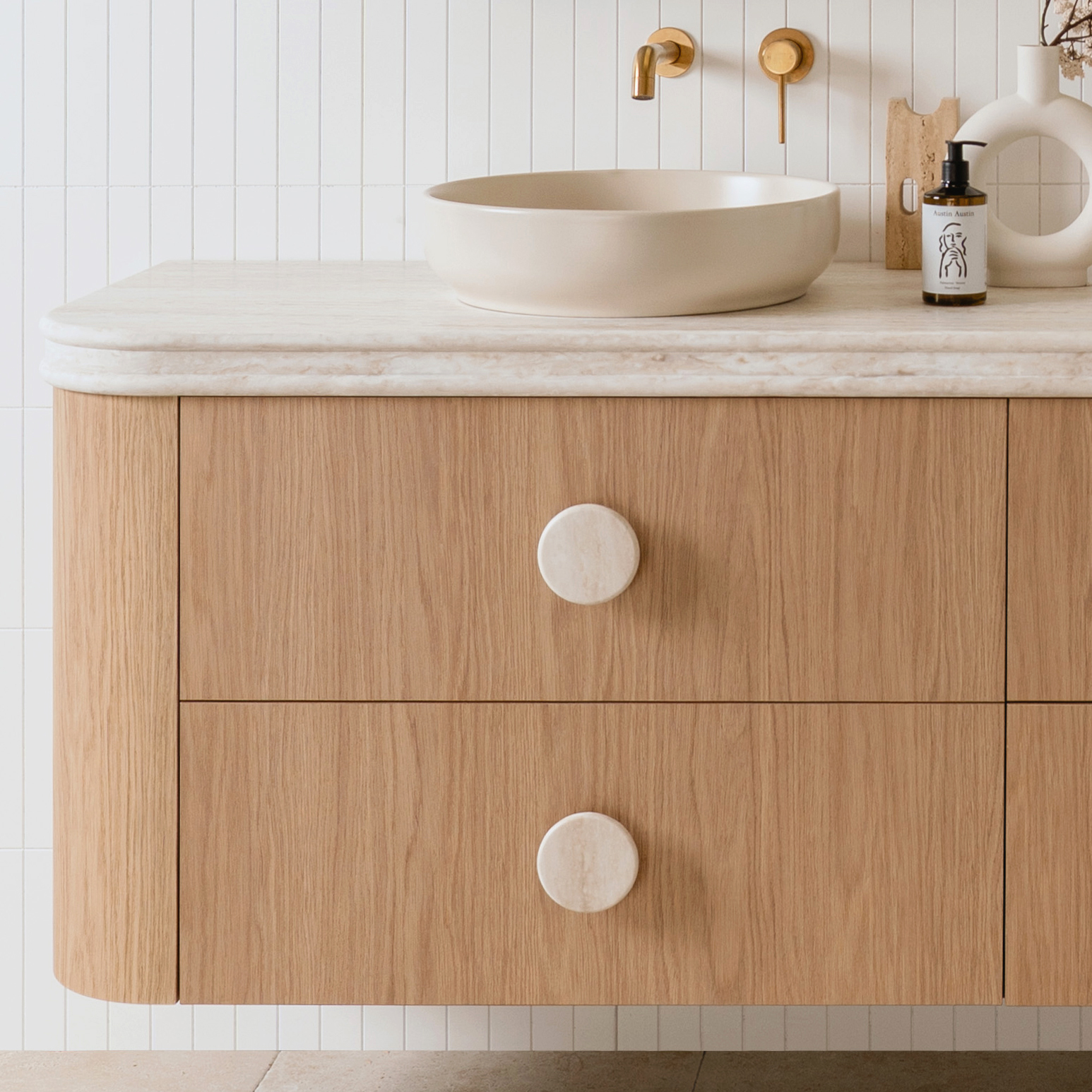 Bespoke curved cabinetry available in a select range of cabinet finishes.