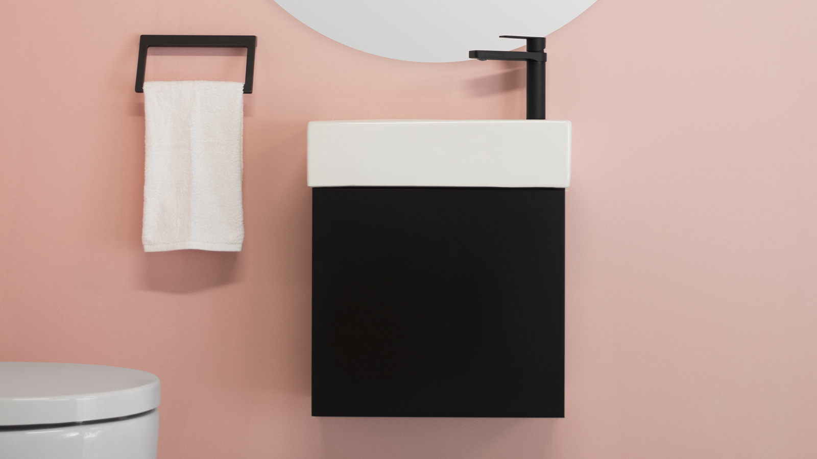 Side bevel-grip finger-pull door with soft-close, left or right-hand hinged.
