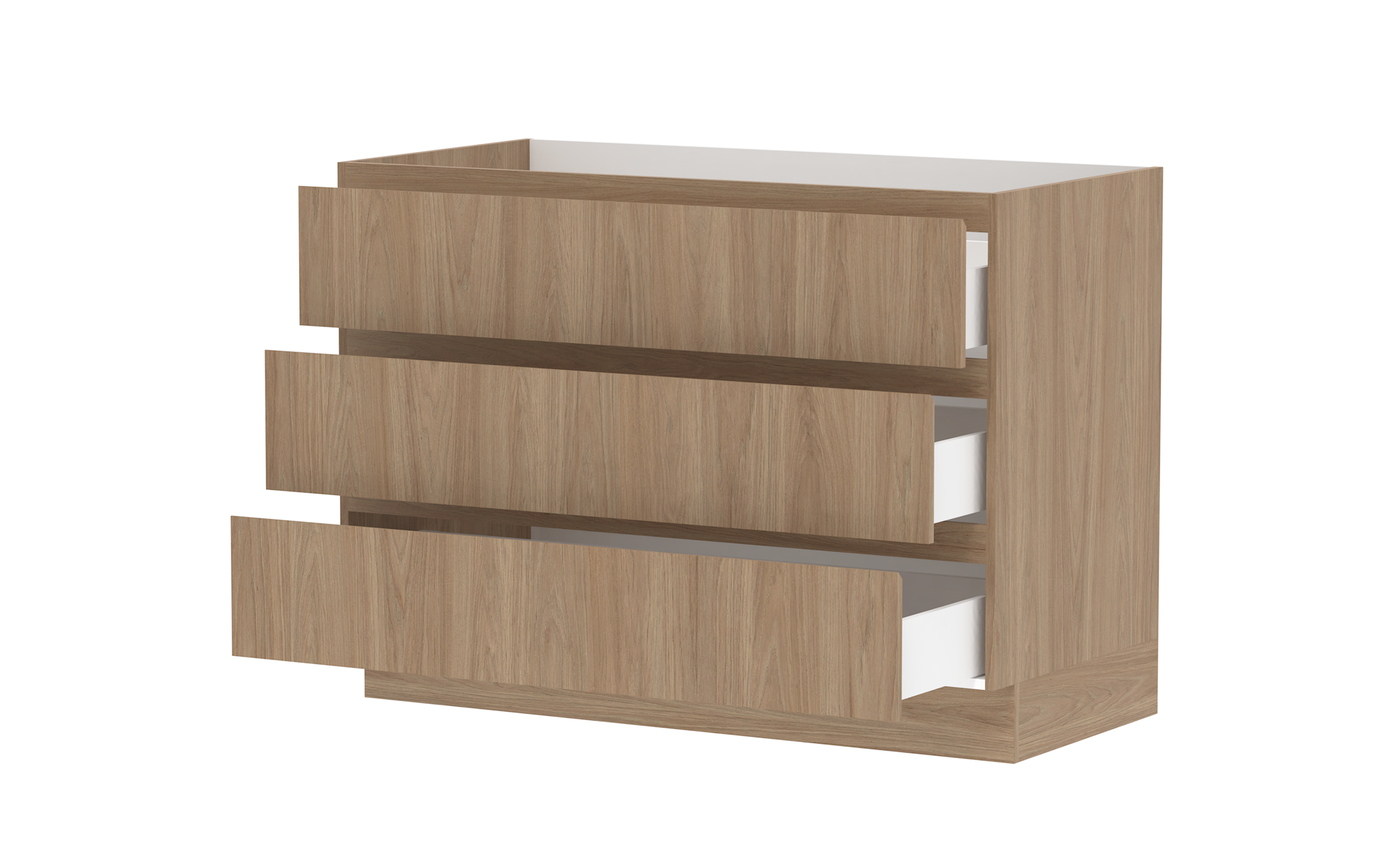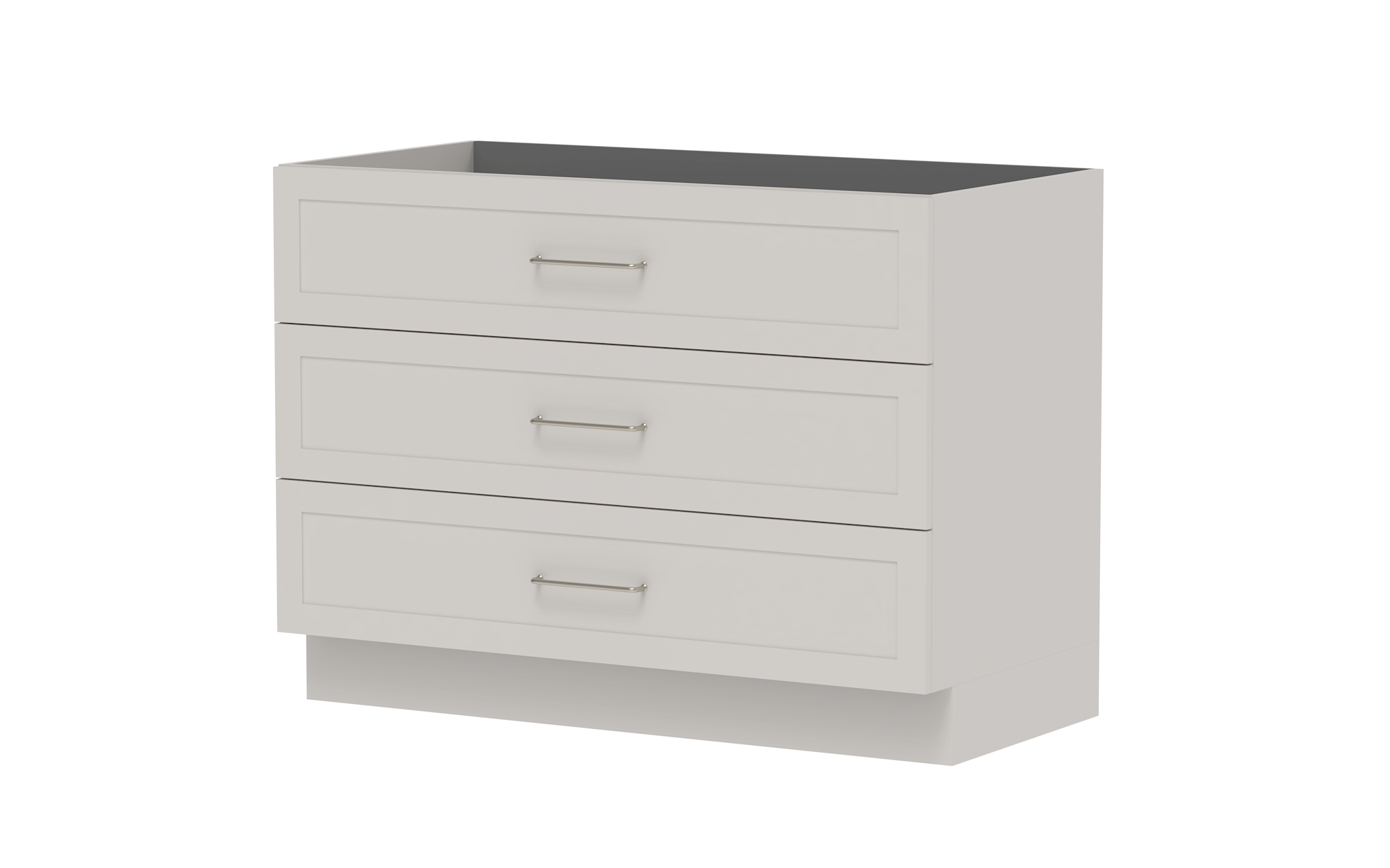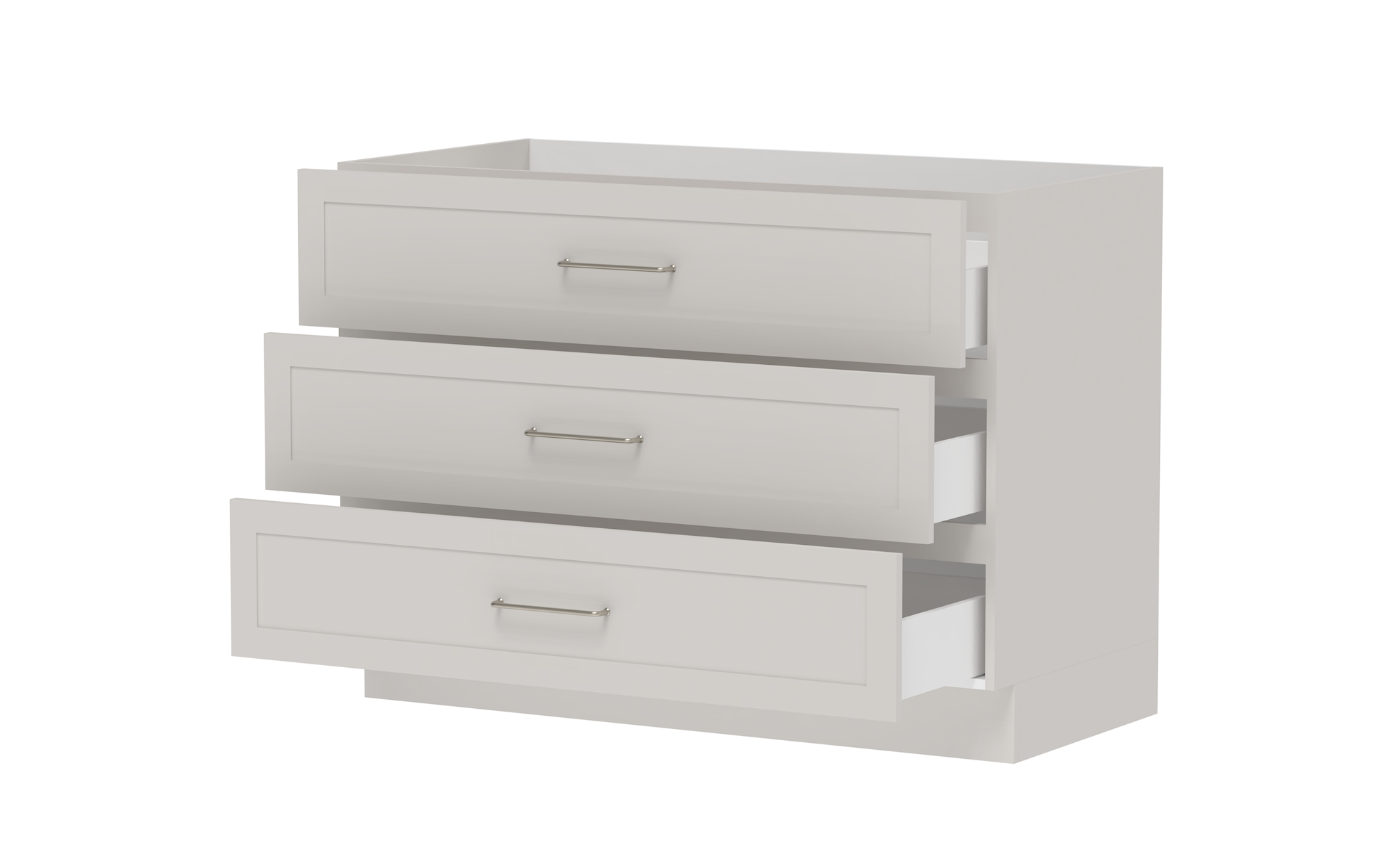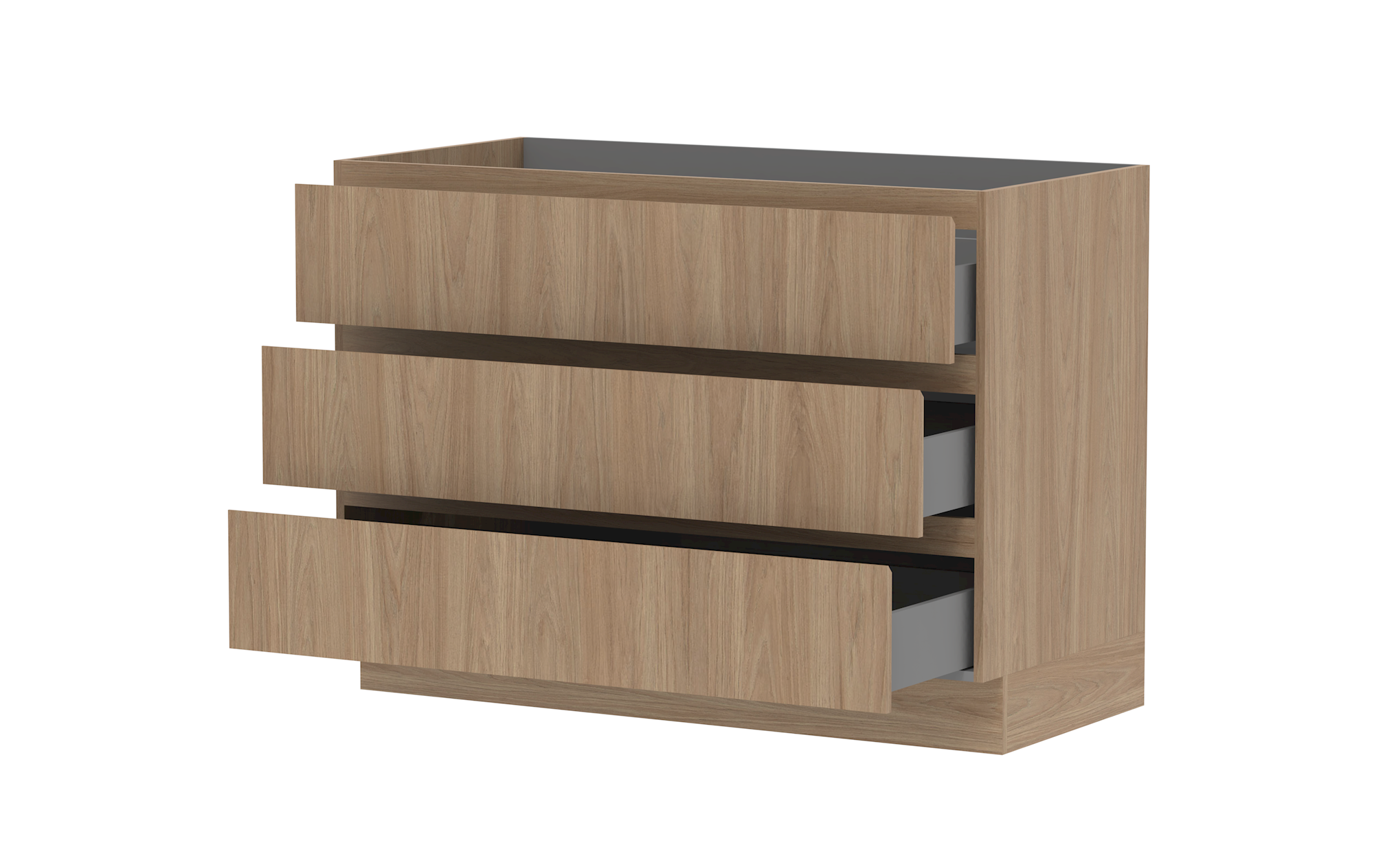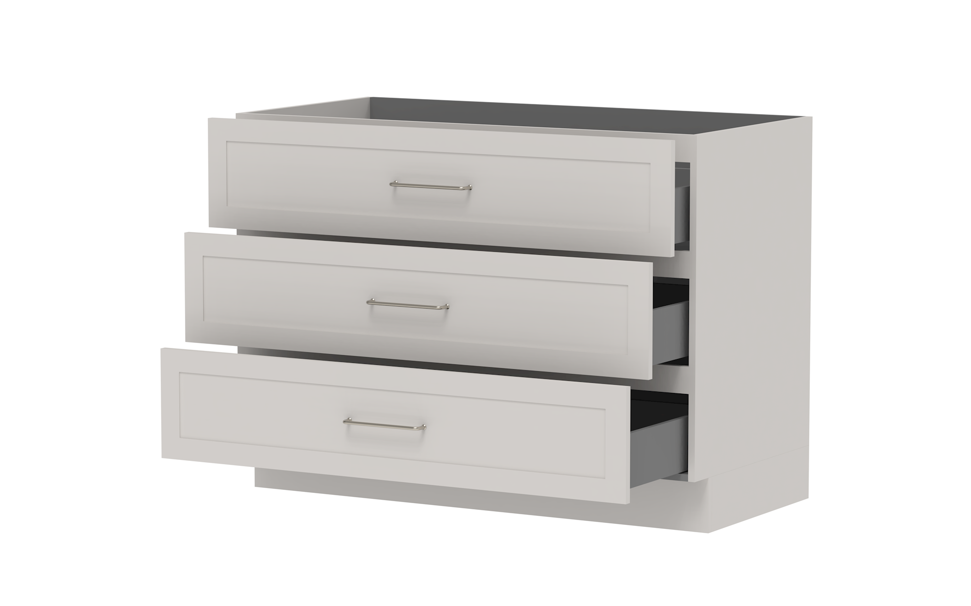 Drawer Cabinets - Pure Silk cabinets come with ADP pressed metal soft-close drawers in white. Decor and Classic cabinets come with ADP Deluxe soft-close drawers with solid sides in graphite..