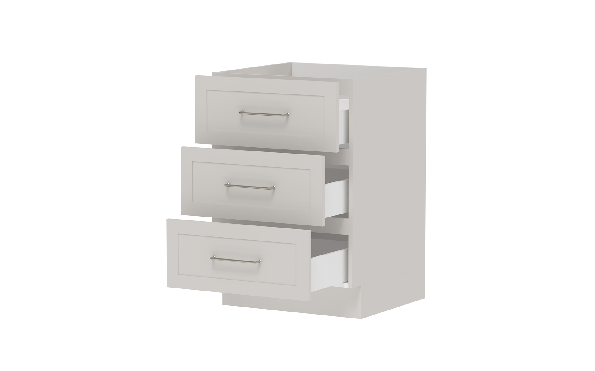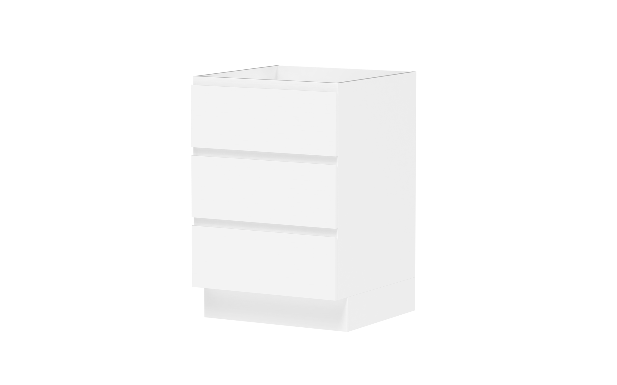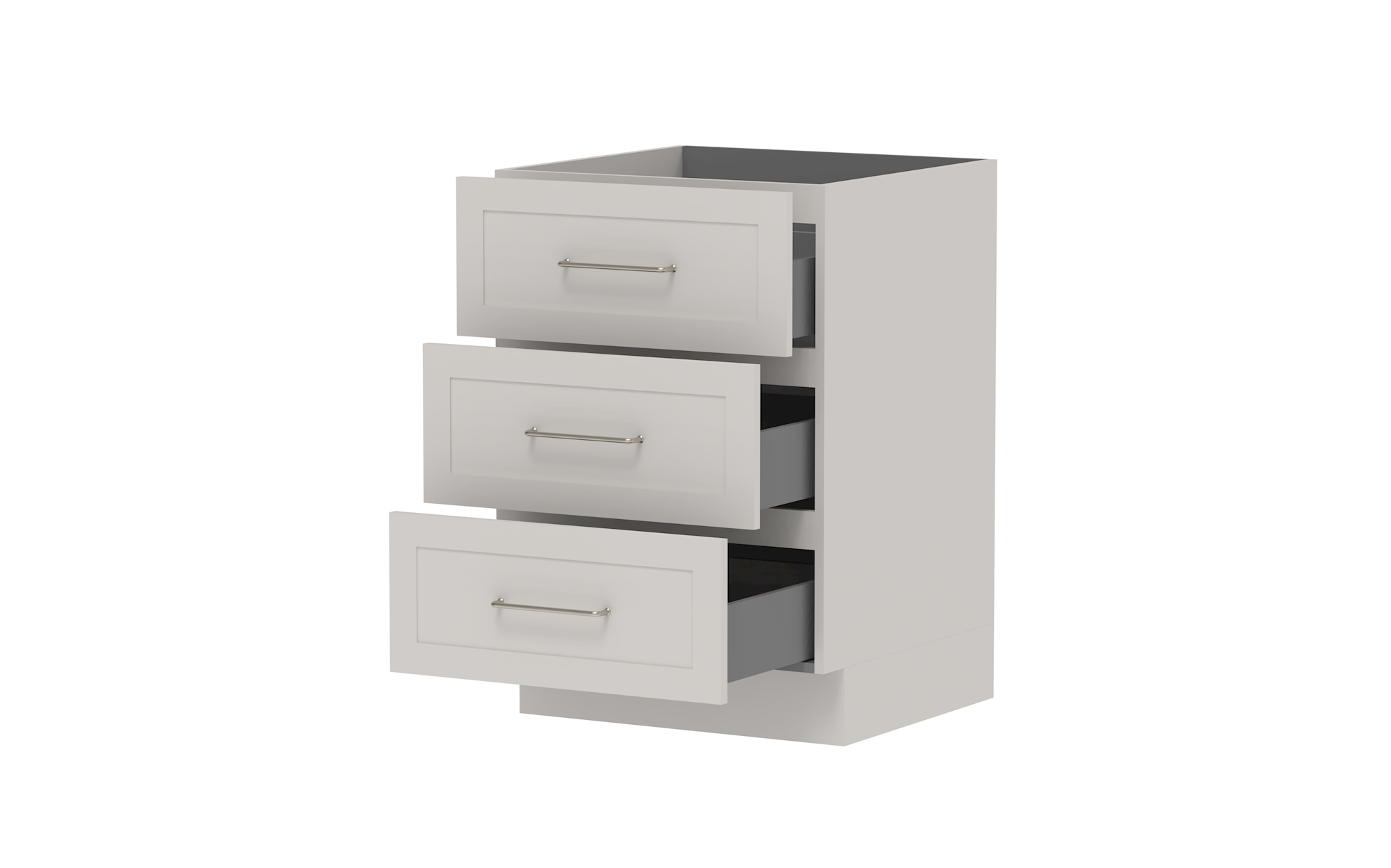 Drawer Cabinets - Pure Silk cabinets come with ADP pressed metal soft-close drawers in white. Decor and Classic cabinets come with ADP Deluxe soft-close drawers with solid sides in graphite..