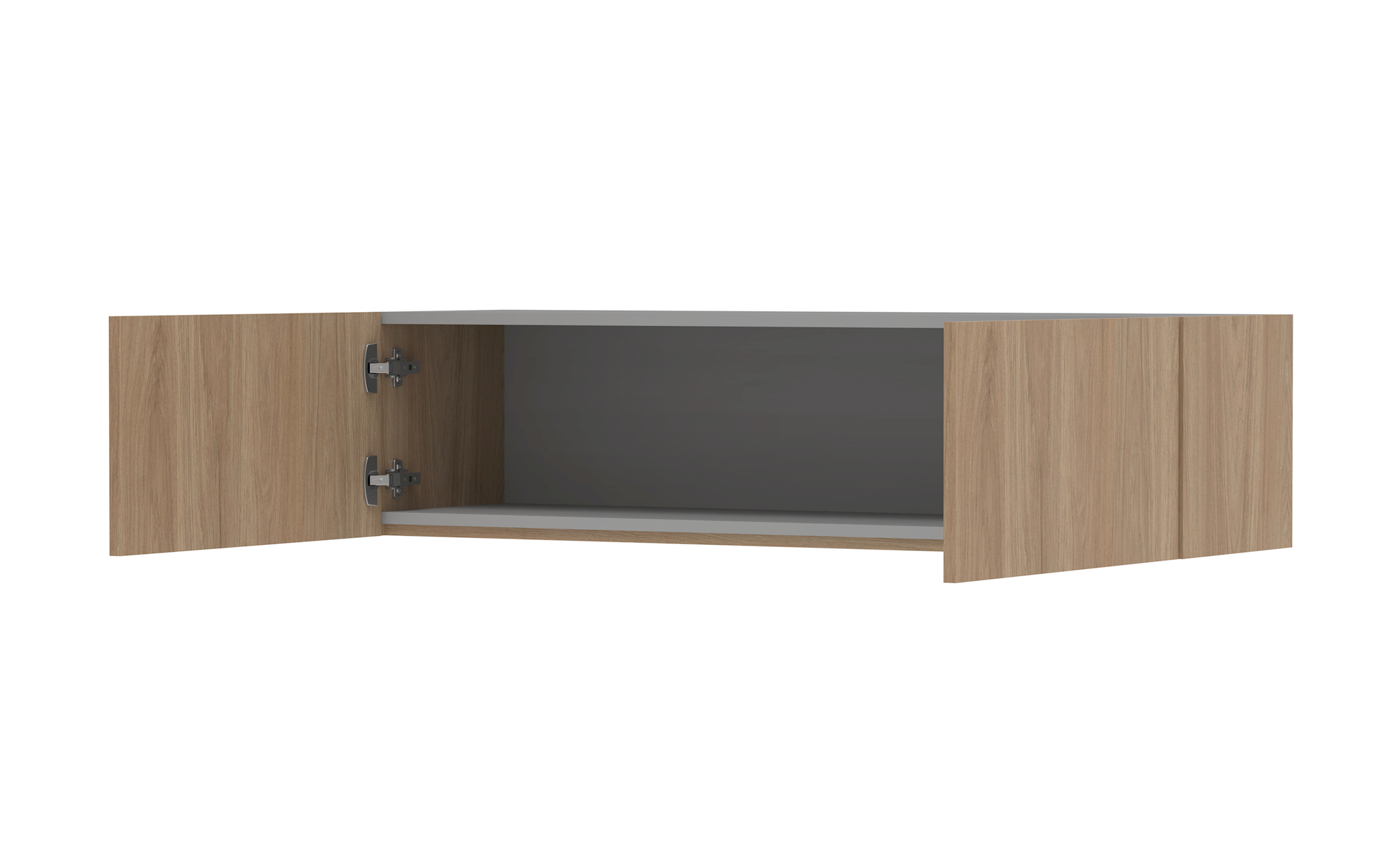 Please note: If open shelf is placed below a wall cabinet, wall cabinet above will be push-to-open (not finger pull).