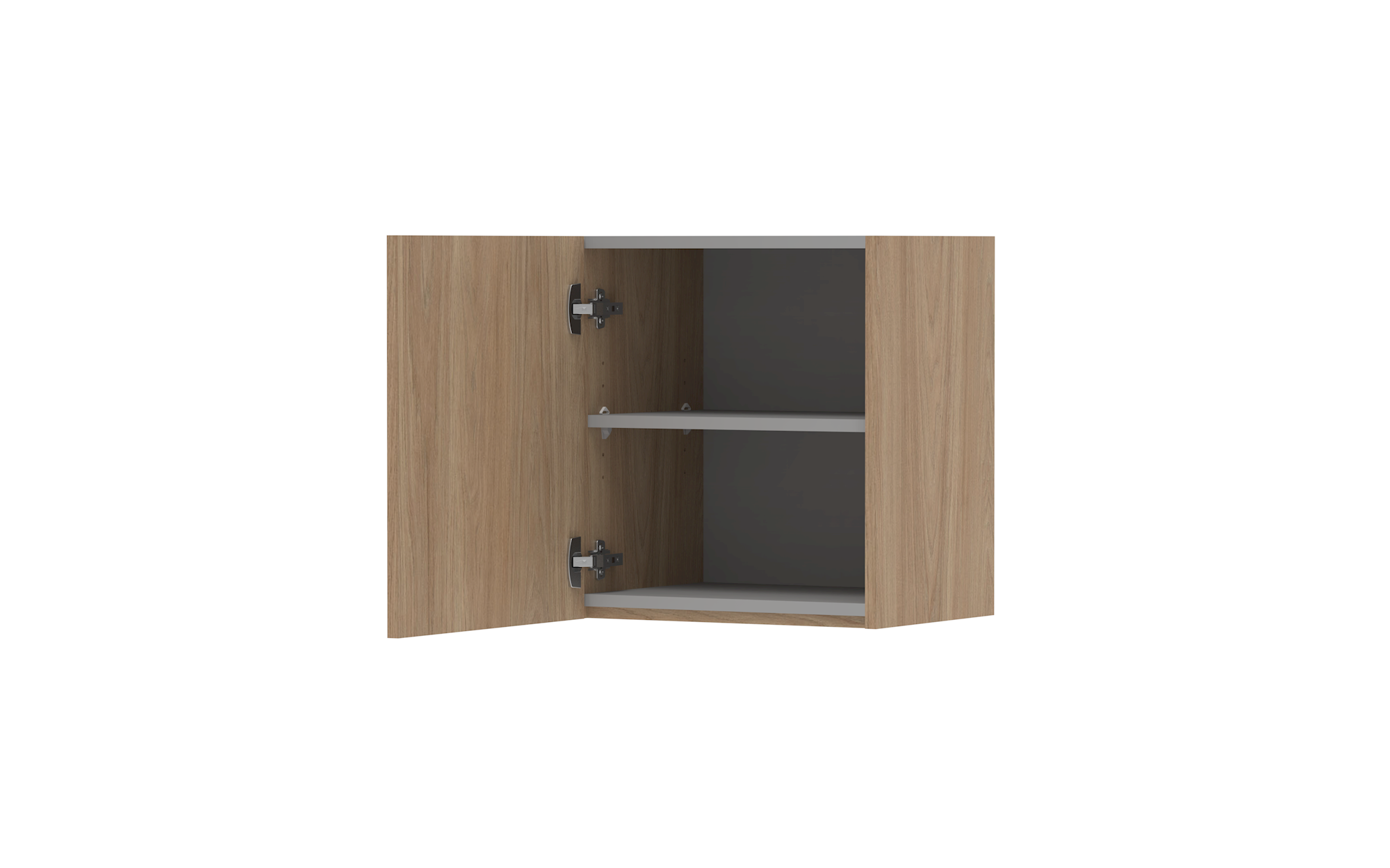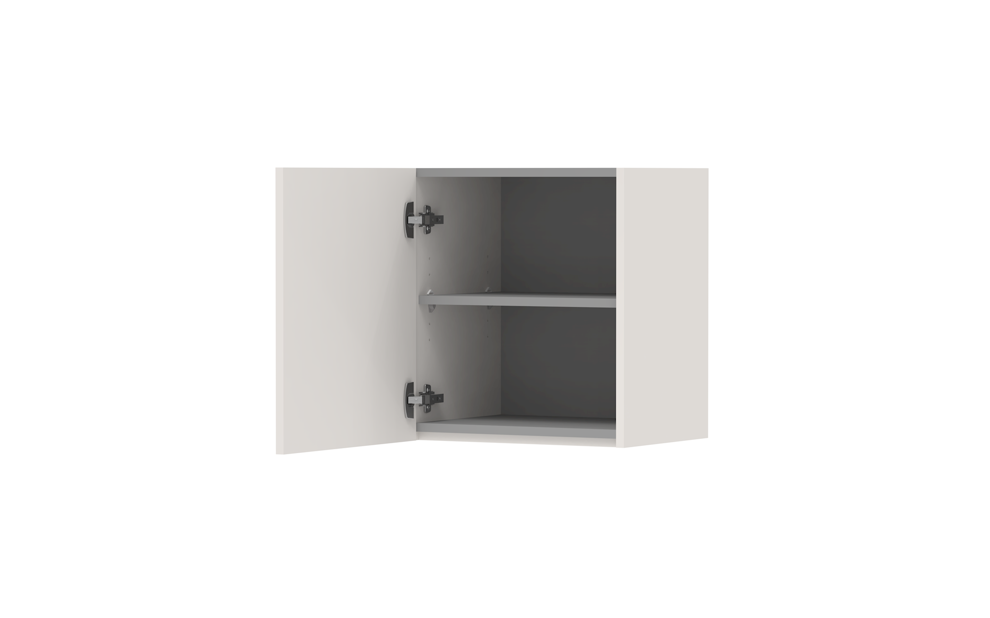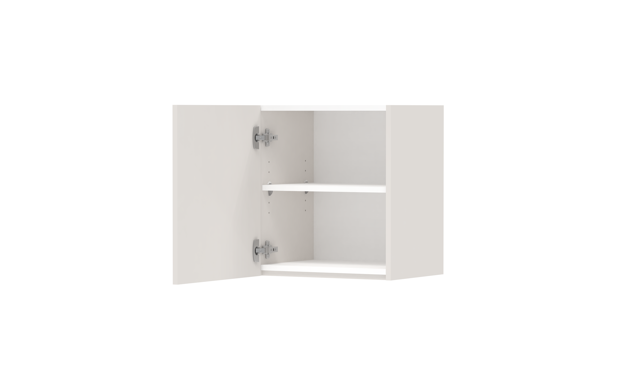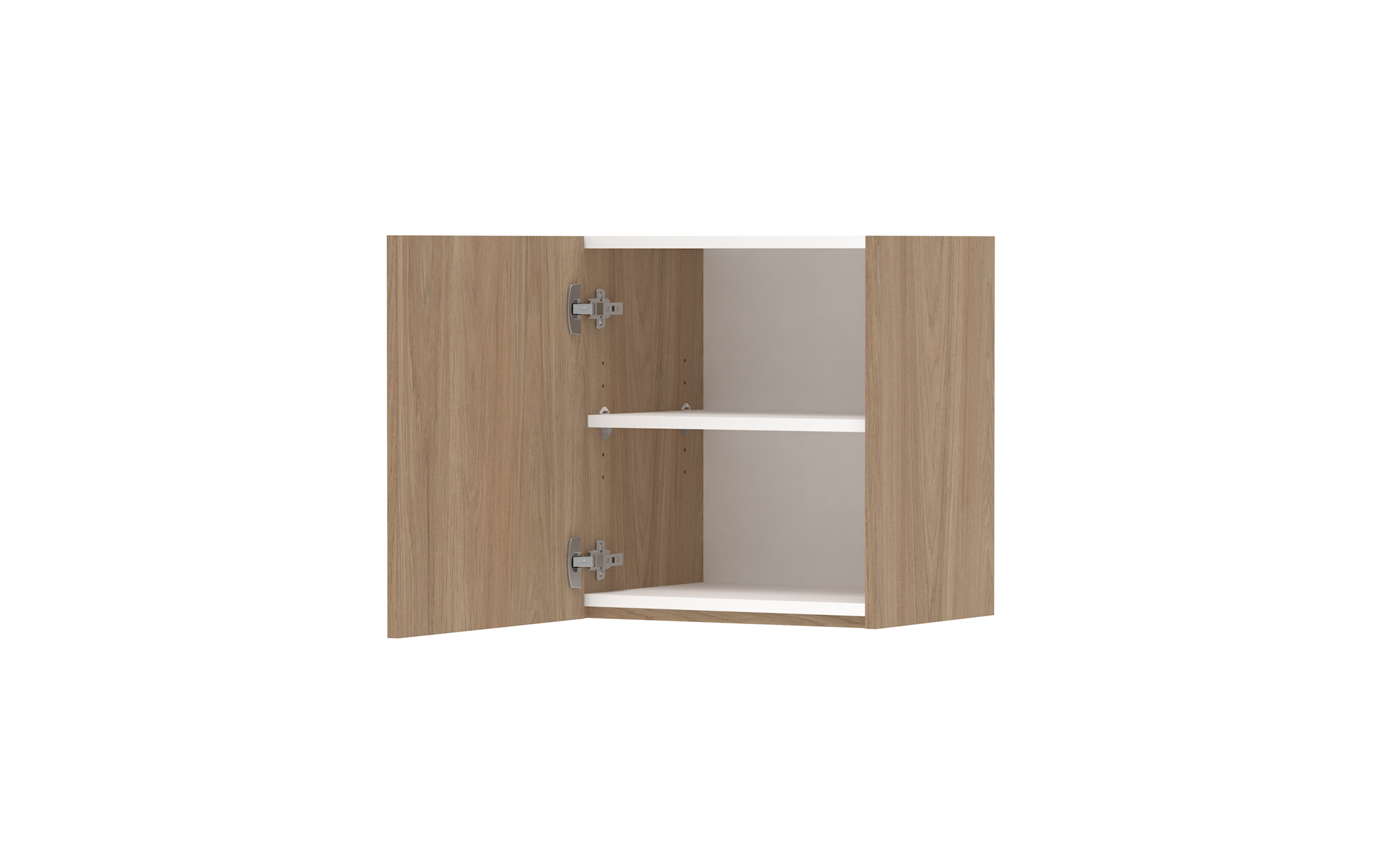 Please note: If open shelf is placed below a wall cabinet, wall cabinet above will be push-to-open (not finger pull).
