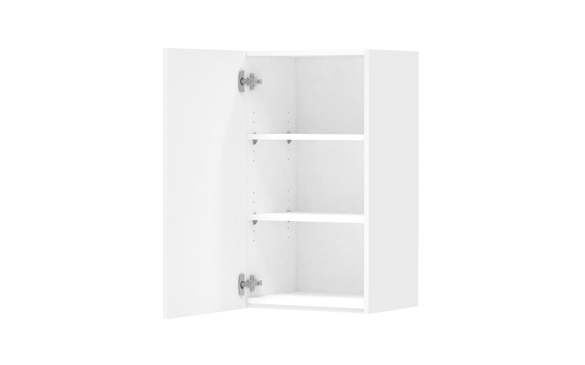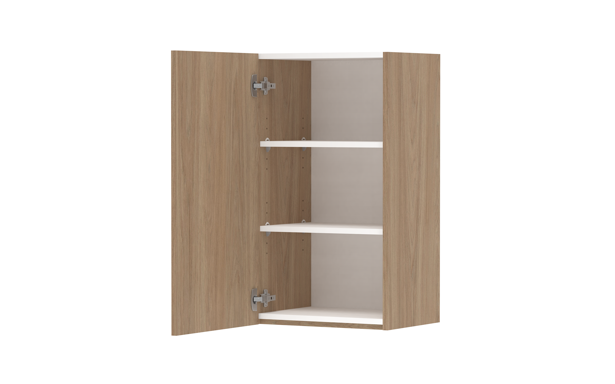 Please note: If open shelf is placed below a wall cabinet, wall cabinet above will be push-to-open (not finger pull).