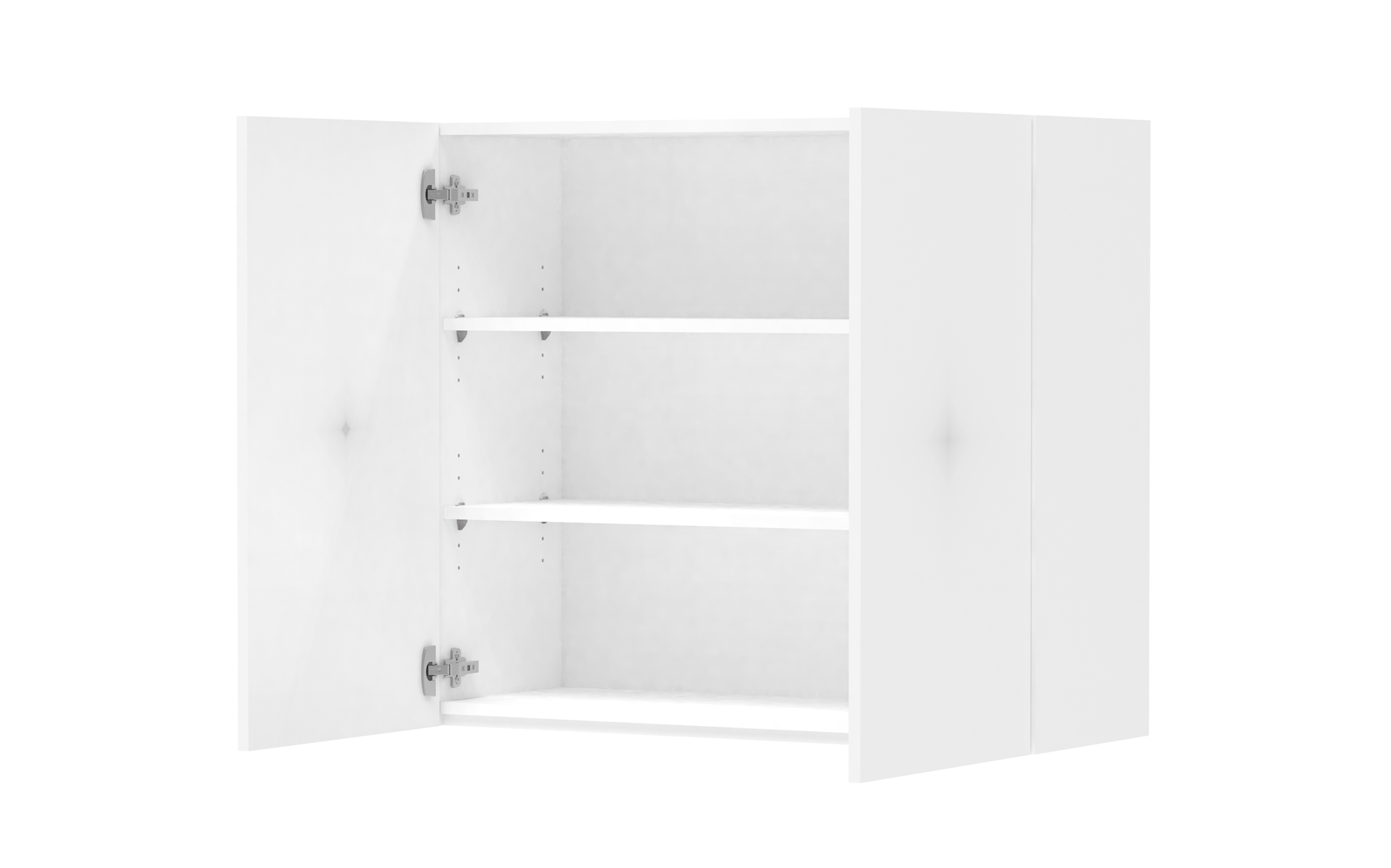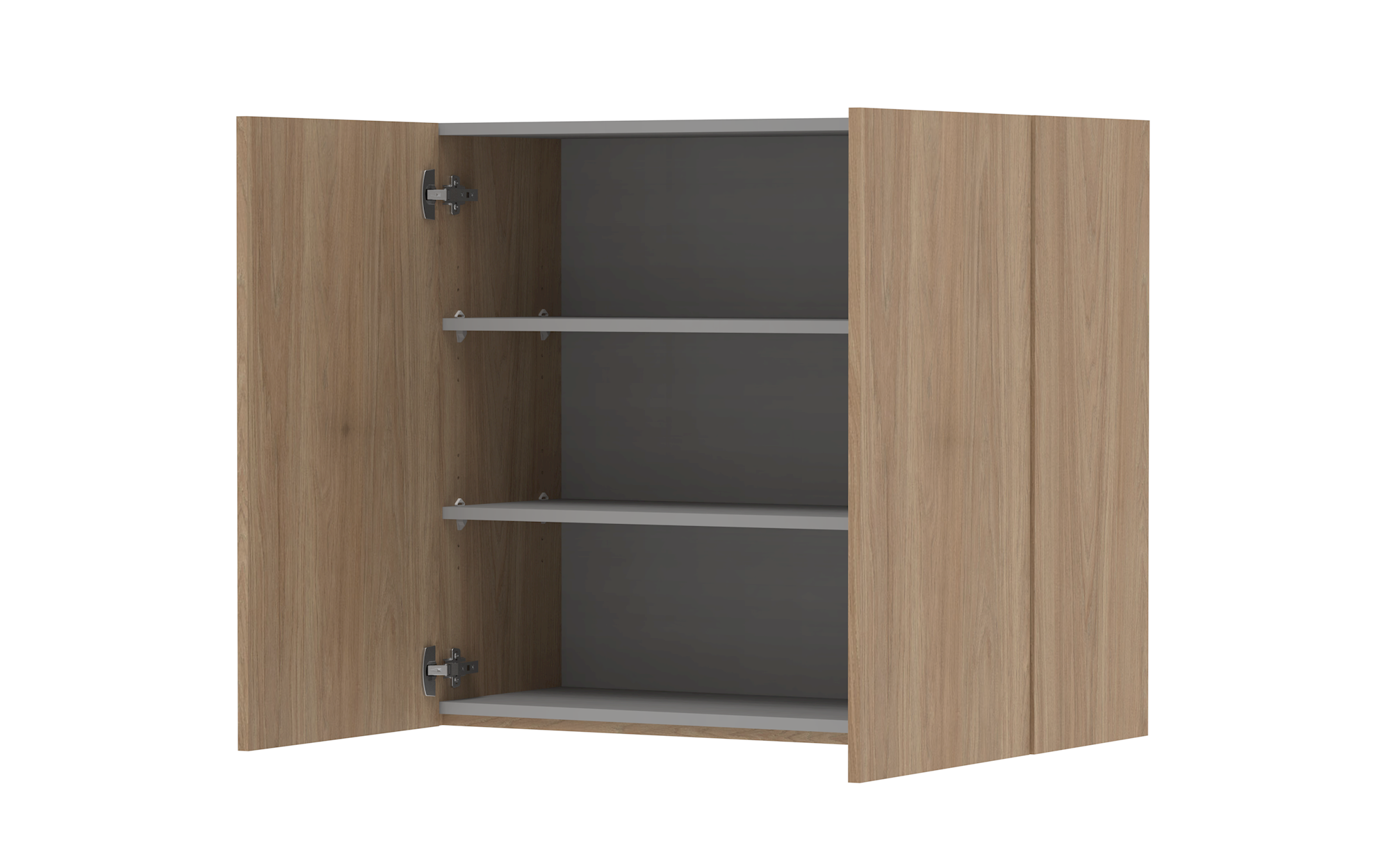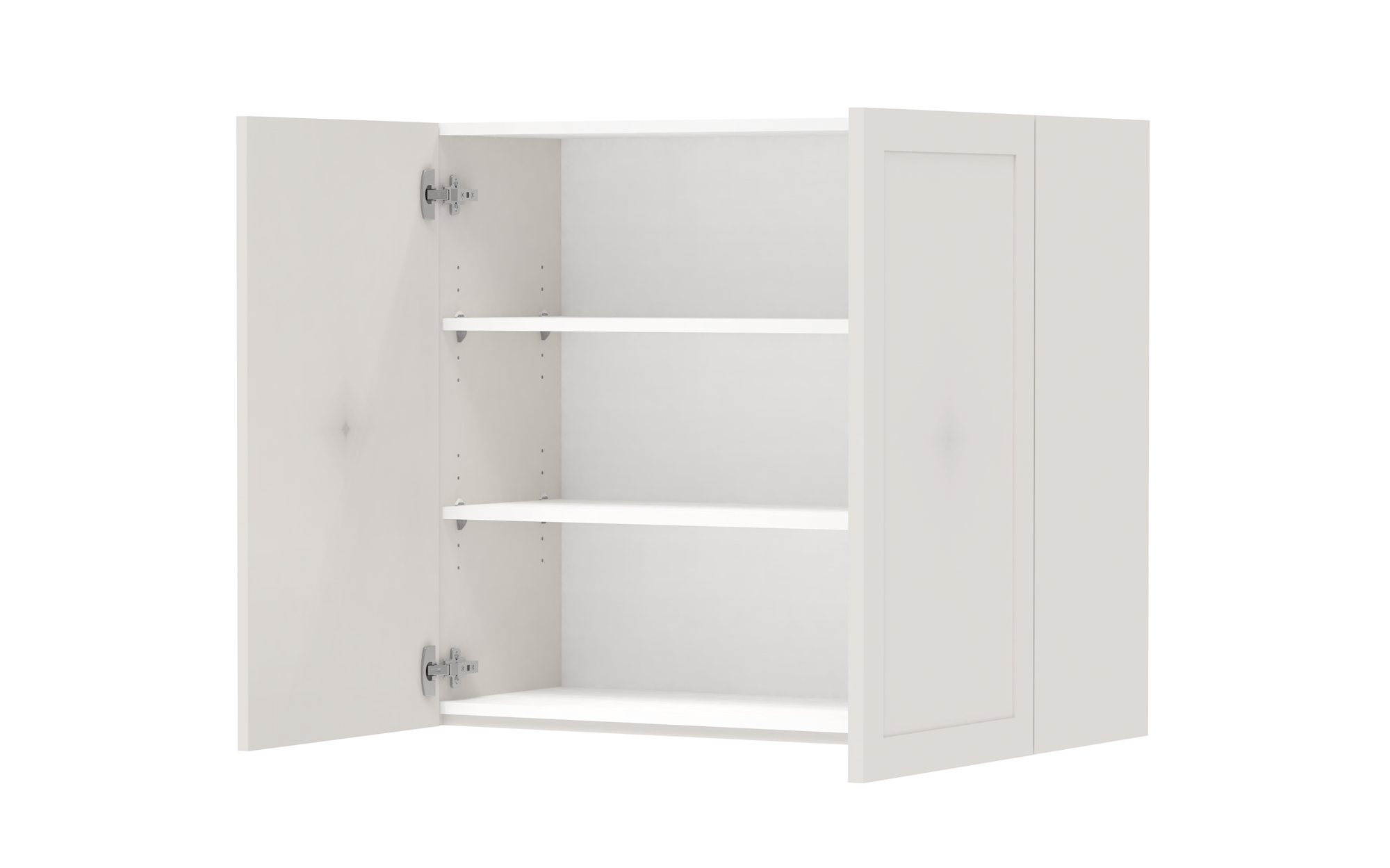 Please note: If open shelf is placed below a wall cabinet, wall cabinet above will be push-to-open (not finger pull).